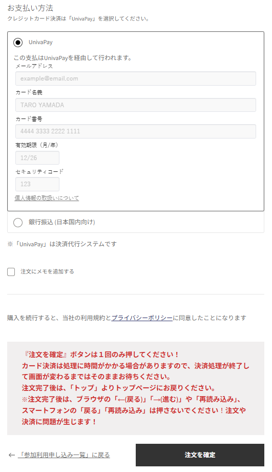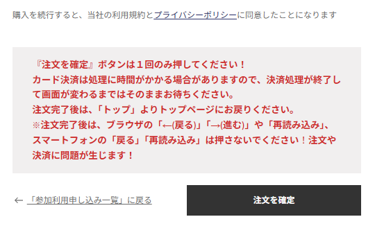 !「注文を確定」ボタンは1回のみ押してください!